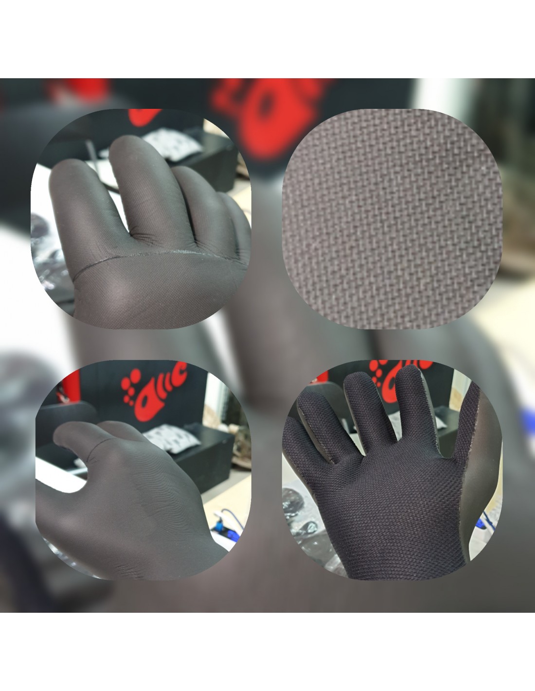 Το πάχος τους είναι 2.5mm στην επάνω πλευρά με υλικό SharkSkin, 2mm από την μεριά της παλάμης για μέγιστη αίσθηση της αφης. Ο τύπος του neoprene που χρησιμοποιείται είναι υπερελαστικός για καλύτερη εφαρμογή και άνεση.