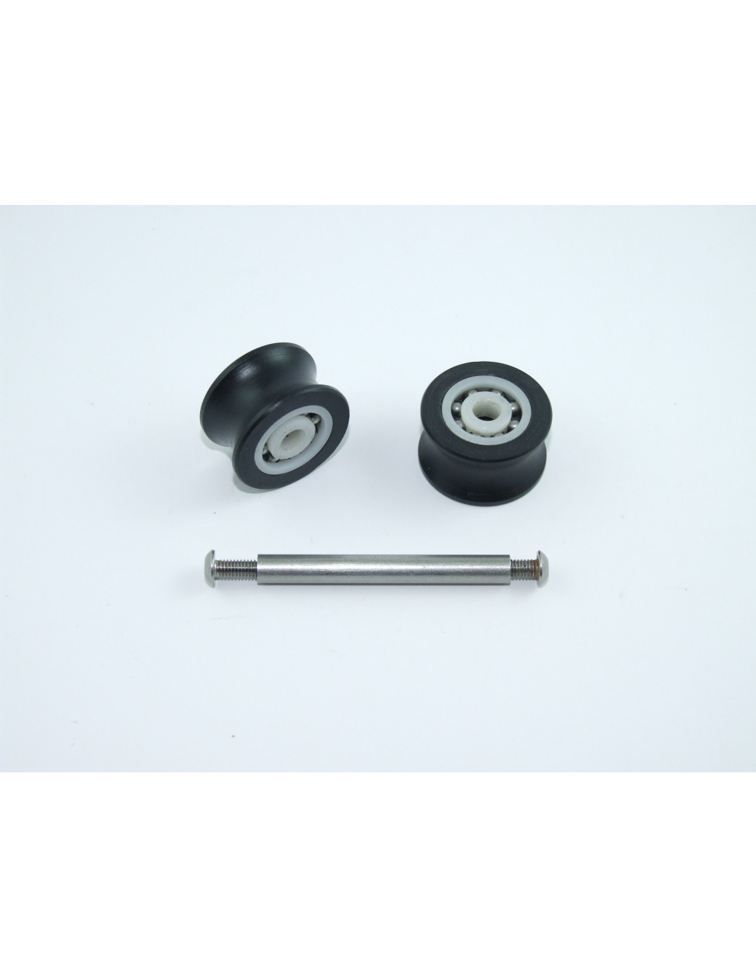 The set includes two PULLEYS with bearings and a 6mm axis of 5.5 cm length.
